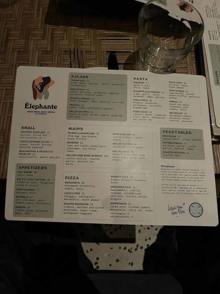 Élephante provides a trendy and upscale dining experience in Santa Monica, CA. With a menu featuring vegan and vegetarian options, this restaurant is perfect for groups and special occasions. The atmosphere is hip and vibrant, with a full bar and happy hour specials on select nights. The dishes, like the whipped eggplant and the Élephante cocktail, are flavorful and refreshing. The rooftop setting offers stunning views of the ocean, making it a great spot for a date night or a fun evening out with friends. The attentive service and quick food delivery enhance the overall dining experience. Make sure to make a reservation to secure a table in the Sunset Room for a memorable dining experience at Élephante.